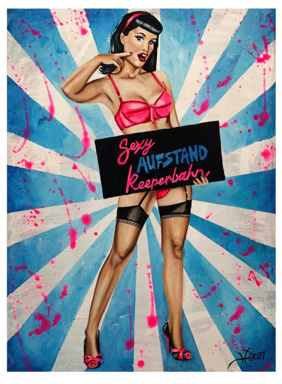 This riot sex worker i have painted to be on the Reeperbahn as a remembrance to the riot in de the corona crisis.